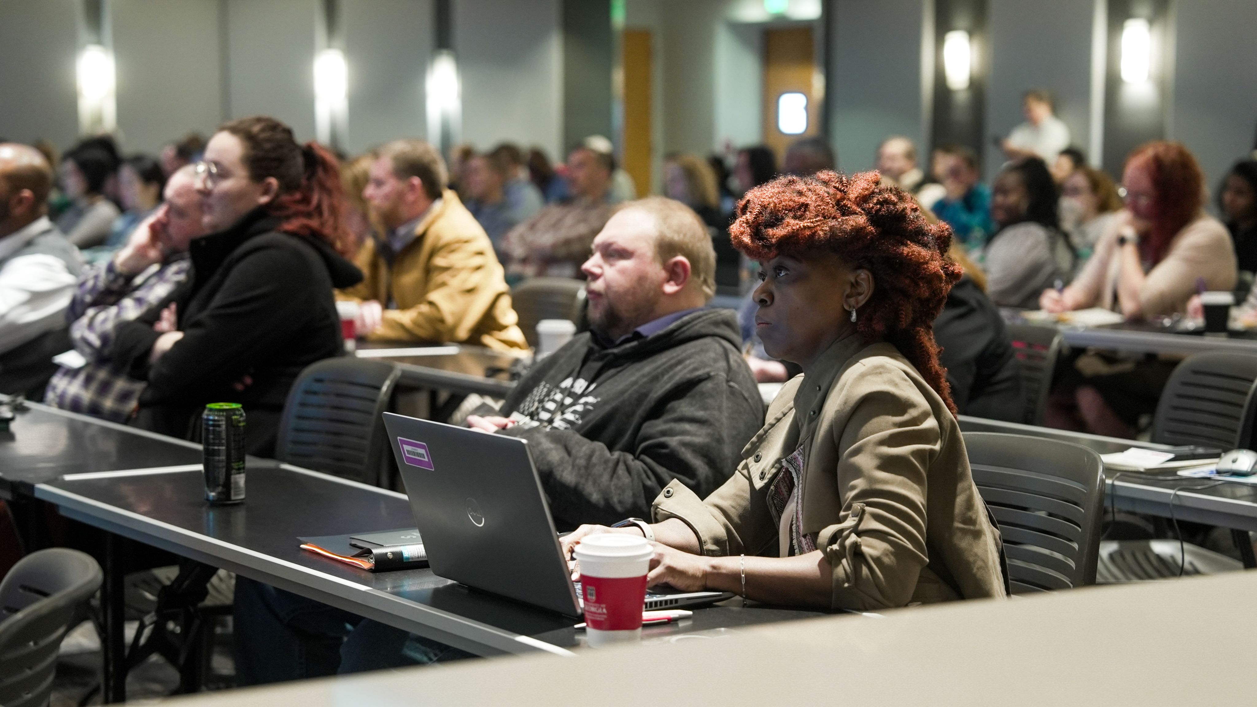 Attendees listen during a plenary session for the 2025 Developing Data Analytics Capabilities Conference.