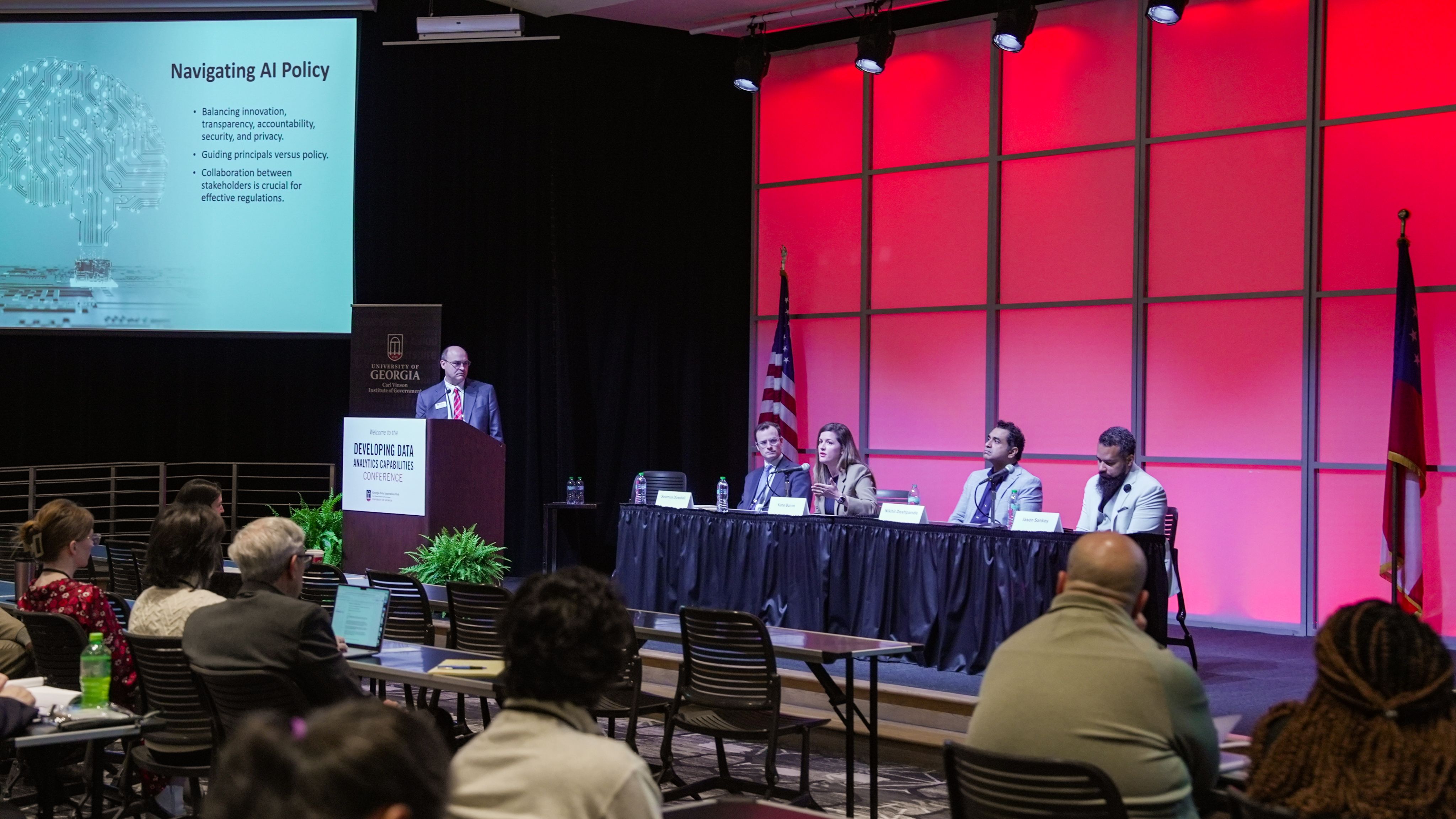 Nearly 275 professionals attended the recent Developing Data Analytics Capabilities Conference at the University of Georgia. The conference, hosted by the UGA Carl Vinson Institute of Government’s Georgia Data Innovation Hub, focused on AI policy and data governance. It was geared toward professionals who work with data in government or academic settings.